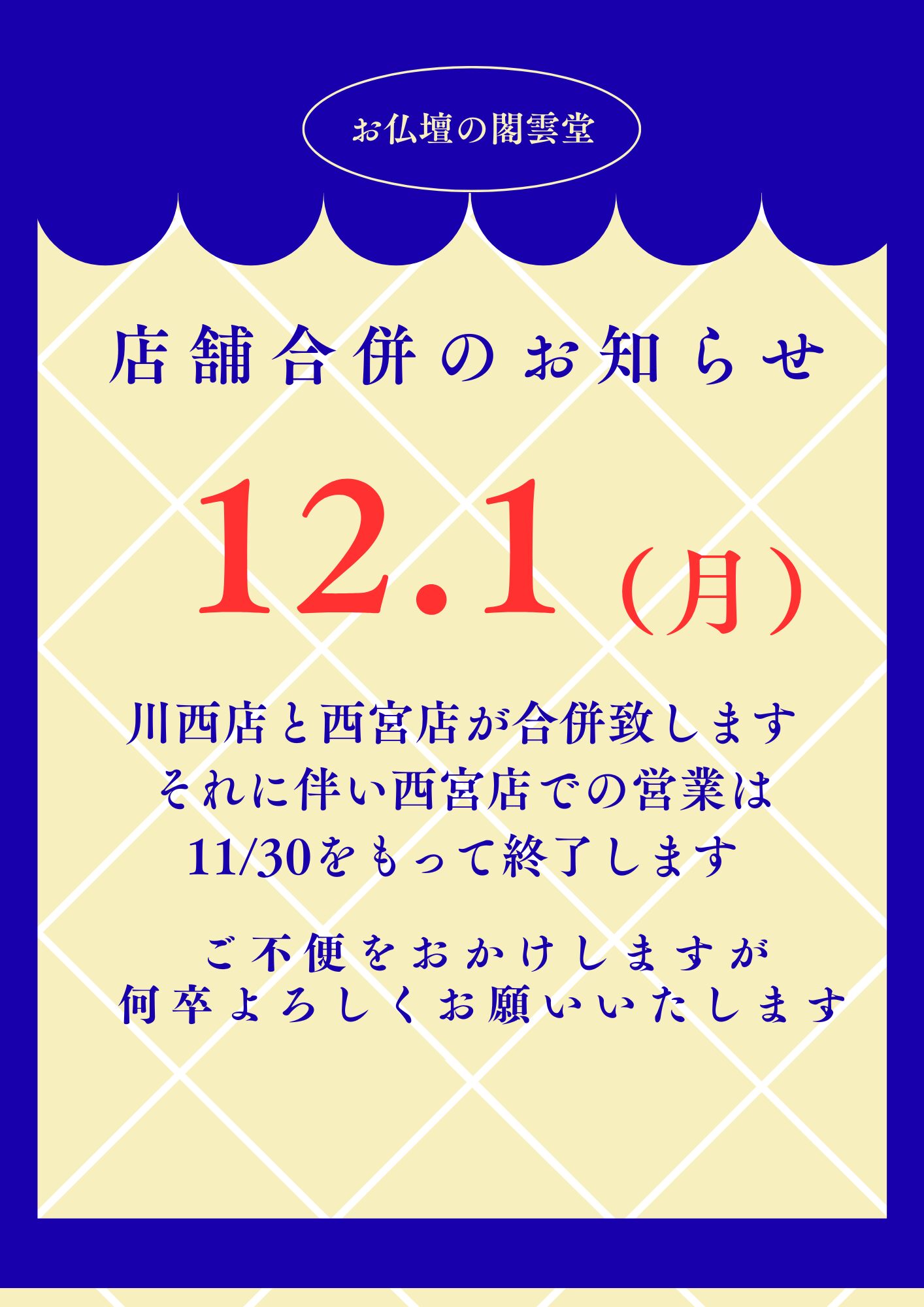 日頃より閣雲堂をご愛顧いただき厚く御礼を申し上げます。