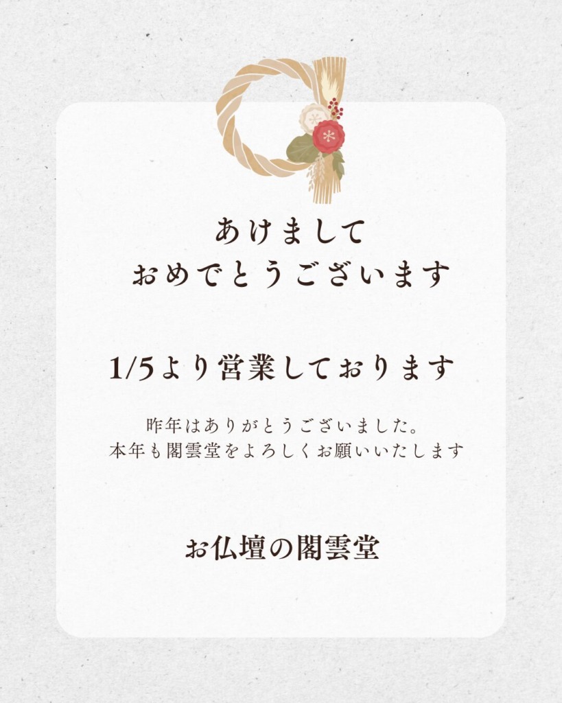 いつもありがとうございます、お仏壇の閣雲堂です。